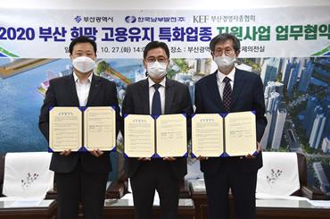 부산시는 한국남부발전(사장 신정식)과 10월 27일 오후 2시 시청 7층 국제의전실에서 코로나19로 인해 어려움을 겪고 있는 지역기업을 지원하기 위한 「2020 부산 희망 고용유지 특화업종 지원사업 업무협약」을 체결했다고 밝혔다.