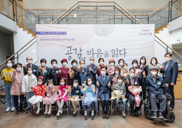 전시작품은 그림과 시화, 서예로 어르신에 대한 활기차고 건강한 모습을 다채롭게 표현하여 아이와 어르신이 함께 공감하고 소통할 수 있도록 했다. 특히, 지난 10월 19일에는 우수작 수상자 26명의 시상이 함께 진행되었다. 대상 수상작은 서예 부문 ‘별’, 그림(어르신) 부문 ‘열린 교실의 행복’, 그림(아동) 부문 ‘다시 찾은 일자리’이다. 이외에도 ‘할머니의 정원’, ‘할머니, 할아버지 취미’, 우리 동네‘ 등 다채로운 작품이 수상작으로 선정되었다.