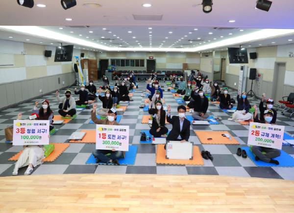 총무과 성동우 주무관은 출제된 문제를 한 문제도 놓치지 않고 모두 맞히며 골든벨을 울렸고, 우수는 복지정책과 이준호 주무관이, 장려는 내당2·3동 김승아 주무관이 각각 차지하였다.