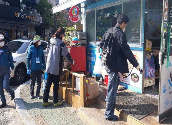 코로나19 방역을 원하는 사업주 및 건물주 등 누구나 동 행정복지센터에 신청하면 방역단원들이 직접 방문하여 출입구 손잡이, 바닥, 의자, 화장실, 창틀 등 접촉이 많은 곳을 위주로 방역서비스를 받을 수 있다.