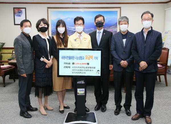 사천시지속가능발전협의회(회장 조선구)는 10월 27일 사천시를 방문해 ‘나눔냉장고와 SOSO한 마켓’ 행사 모금액 1,014,000원을 희망나눔4000 경남사회복지공동모금회에 기탁하였다.