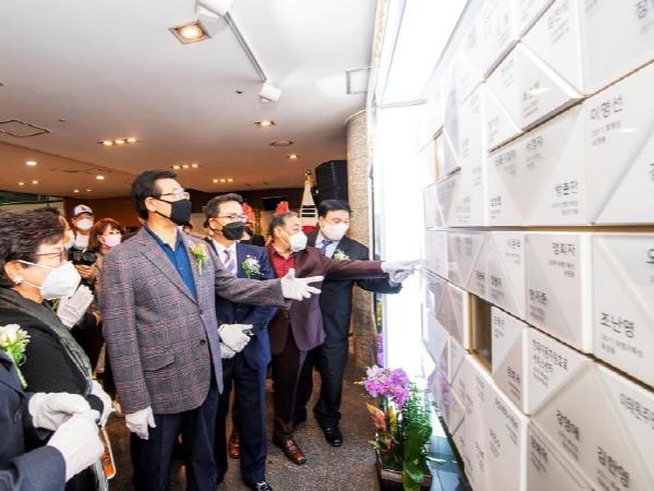 서울 용산구가 27일 용산아트홀 대극장 앞 로비에서 ‘명예의 전당’ 제막식을 가졌다.