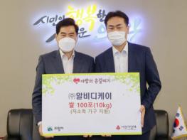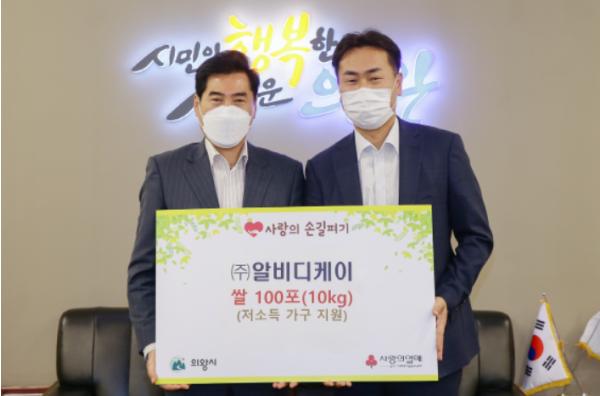 의왕시는 부동산 개발업체 ㈜알비디케이에서 어려움을 겪고 있는 저소득층을 지원해달라며 쌀 100포(10kg)를 기부했다고 밝혔다.