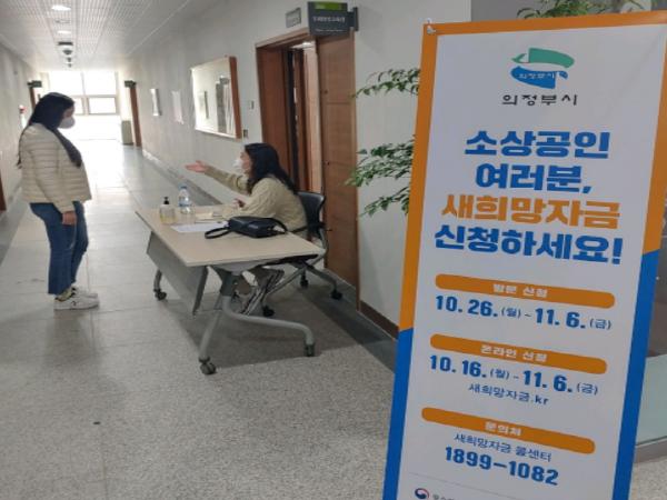 의정부시는 10월 26일부터 코로나-19 확산으로 어려움을 겪고 있는 관내 소상공인을 대상으로 새희망자금 확인지급을 위한 현장접수센터를 11월 6일까지 운영한다고 밝혔다.