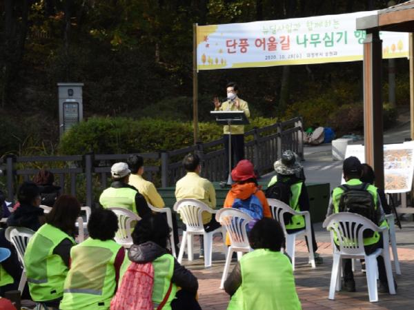 의정부시는 10월 28일 뉴딜사업과 함께하는 색다른 공원 단풍 어울길 조성사업으로 직동근린공원 중앙연못 주변에서 뉴딜사업 근로자, 시민대표, 환경사업소 직원들이 함께 단풍나무를 식재했다고 밝혔다.