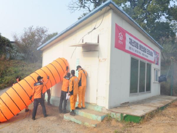 실험은 4단계에 걸쳐 상황별 연기 제거 시간을 비교하는 방식으로 이뤄졌다. 자연배기(배연창 개방) 상태, 강제급기 상태, 강제배기 상태, 화재실에 공기를 공급하면서 동시에 배출하는 강제 급·배기 상태 등 4가지로 상황을 구성한 후 실제상황을 가정해 시야 확보를 위한 방독면 등을 착용하고 실험을 진행했다.