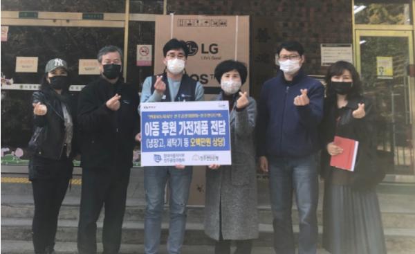 28일 완주군에 따르면 현대자동차지부 전주공장위원회, 전주연탄은행은 소양면 소재 아동복지시설인 선덕보육원을 비롯해 다자녀 아동 4가정에 대형 냉장고, 세탁기 등 500만원 상당의 가전제품을 구입해 전달했다.