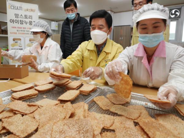 특히, 황 청장은 이날 위문품으로 다른 자활사업단인 ‘치밥치킨’에서 만든 치킨을 제공돼 행사에 의미를 더했으며, 자활참여자들과의 소통 후 누룽지 제조과정을 직접 체험하는 따뜻한 시간을 가졌다.