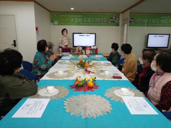 대전시 대덕구는 만성질환이나 인지장애가 있는 어르신께 ‘시(詩)가 있는 오감 티테라피’ 자조모임을 진행하고 있다.
