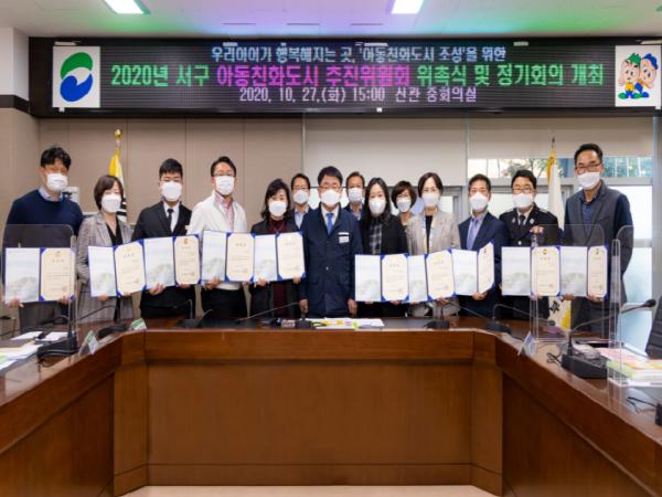 부산시 서구는 아동의 권리가 온전히 존중받는 유니세프 아동친화도시 조성을 위해 아동친화도시추진위원회를 구성해 지난 27일 구청 중회의실에서 위촉식 및 정기회의를 개최했다.