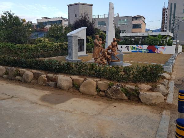 내이동은 여기에 더 완성도를 높이기 위해서 청동상 주변에 조경수를 식재하고 조경석을 설치했다. 그 옆으로는 돌의자로 경계석을 만들어 관광객과 행인들에게 편의를 제공할 수 있도록 했다.