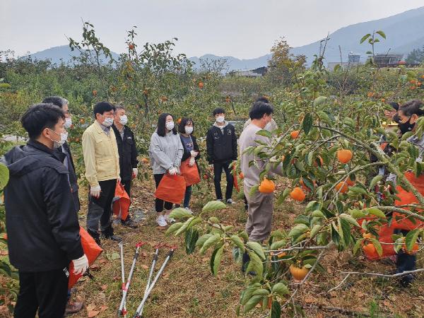 이날 직원들은 대봉감 수확과 더불어 과수원 주변 지주대 이동로 정리와 쓰레기 수거, 환경정화활동 등을 실시했다.