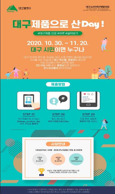 대구시는 대구 지역 특산물과 로컬푸드 체험스토리를 인스타그램과 페이스북을 통해 공유하는 ‘대구제품으로 산 Day!’ 공모전을 진행한다.