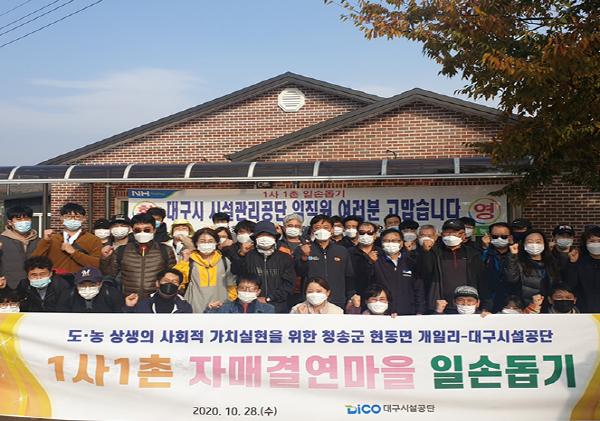대구시설공단은 10월 28일, 50여 명의 직원들이 지역 농가를 돕기 위해 청송을 방문하여 힘을 모아 일손 돕기에 나섰다.