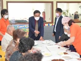 김일권 양산시장은 28일 관내 사회적기업인 경남돌봄센터 사회복지시설 양산도우누리치매전문센터를 방문해 최근 노인요양시설 등에서 확산되고 있는 코로나19의 방역사항 점검과 현장 직원들의 애로사항을 청취하는 시간을 가졌다.