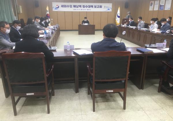 통영시는 10월 27일 통영시청 회의실에서 따뜻한 시정, 행복한 시민, 다시 뛰는 통영 건설의 자주재원 확충을 위해 김제홍 통영시부시장 주재로 2020년 세외수입 체납액 징수대책 보고회를 가졌다.