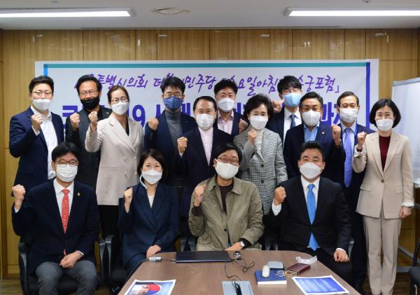 서울시의회 더불어민주당 원내대표단(대표의원 조상호, 서대문4)은 10월 28일(수) 오전 7시 30분에 서울시의회 의원회관에서 정기 정책포럼인 「수요일아침.덕수궁포럼」을 “코로나19시대, 정치가 받은 과제”라는 주제로 개최했다.