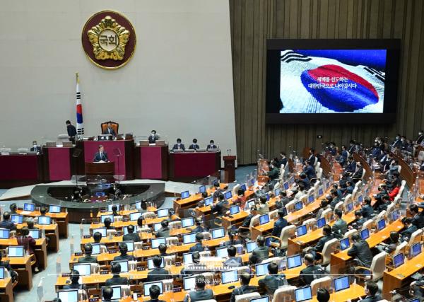 이와 함께 대통령은 "‘함께 잘 사는 나라’를 향한 우리의 노력이 민의의 전당 국회에서부터 실현될 것이라 믿는다"면서 "함께 손을 잡고 국난을 극복하고, 세계를 선도하는 대한민국으로 나아가자"고 독려하며 연설을 마쳤다.