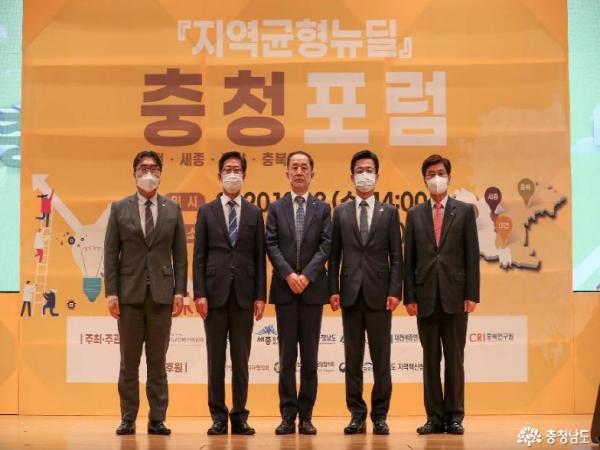 양승조 충남도지사는 28일 대전시청 대강당에서 국가균형발전위원회 주관으로 열린 ‘지역균형뉴딜 충청포럼’에 참석해 새로운 지역 균형 뉴딜 정책으로 ‘충남 그린 바이오 스마트 시티’를 제안했다.