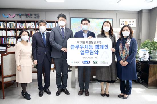 강동구는 지난 28일(수) 구강전문 브랜드 ‘오랄-비’, 글로벌 재활용 컨설팅 기업 ‘테라사이클’, 환경단체 ‘쿨시티강동네트워크’와 함께 폐 칫솔 재활용을 위한 ‘블루우체통 캠페인’ 업무협약을 맺었다고 밝혔다.