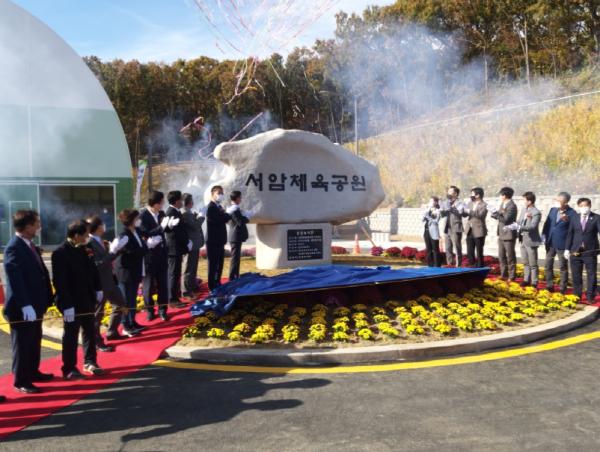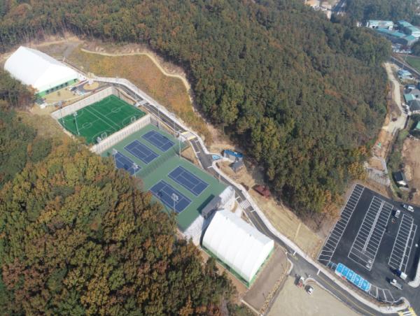 총 사업비 126억 원을 투입해 2019년 6월 착공한 서암생활체육공원은 부지면적 4만8,000 여㎡에 테니스장 5면, 풋살장 2면과 전천후 사용이 가능한 족구장 3면, 게이트볼장 1면, 관리실 등의 부대시설을 갖췄다.
