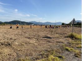 단지 조성을 위해 굴삭기와 트랙터를 동원해 오래된 잡초를 제거했으며, 땅을 고른 후 비료를 살포하고 유채씨를 파종했다.