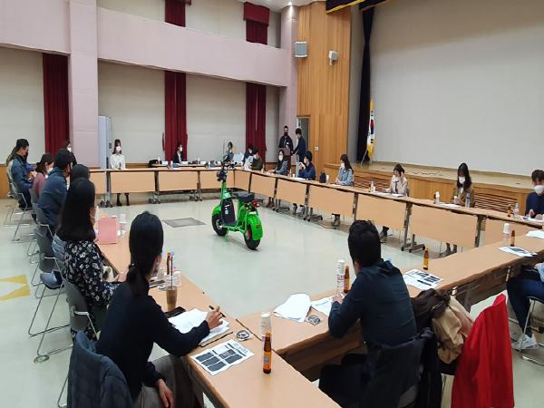 이날 교육은 간단한 사업소개 후, 각 배부처에서 실제로 관리하게 될 실무자를 위하여 데이터 수집 방식, 그를 위한 사용방법, 전기이륜차 보급계획(일정, 보험 등)을 안내하고 실제 체험해 보는 순으로 진행되었다.