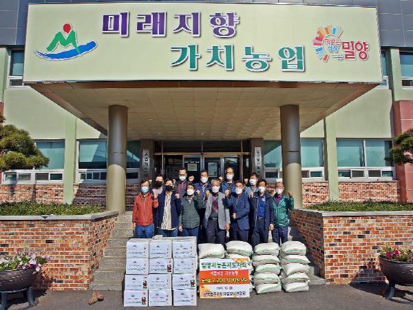 밀양시농촌지도자회는 지난 4월에도 3백만원의 성금을 기탁한 바 있으며, 지역 인재양성을 위해 밀양시 장학재단에 3년에 걸쳐 천만원의 장학금을 기탁해 명예의 전당에도 가입이 돼있다.