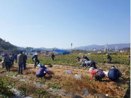 함양군은 ‘귀농인 체류형 농업 창업지원센터’입교생 50여명이 29일 실습농장에서 고구마 캐기 실습을 하여 1톤의 수확을 올렸다고 밝혔다.