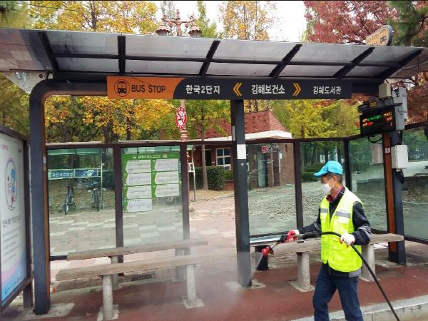 김해시는 코로나19에 대응한 테마별 방역소독의 일환으로 지난 28일 주요 시가지에 있는 밀폐형 버스승강장 157개소와 버스터미널 및 철도역사(진영역, 한림정역)에 방역소독을 실시했다고 밝혔다.
