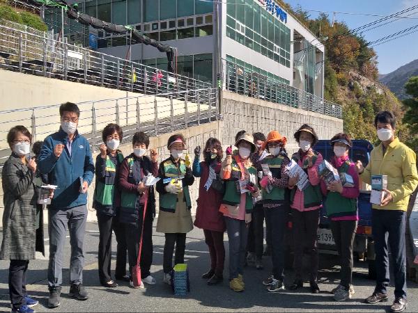 이날 산내면 주부민방위기동대원, 산내면 직원 등 20여 명은 가을철 등산객 증가에 따른 안전사고 및 코로나 19 확산 예방을 위해 산행시 안전수칙 홍보와 마스크 착용을 생활화 할 것을 집중적으로 홍보했다.