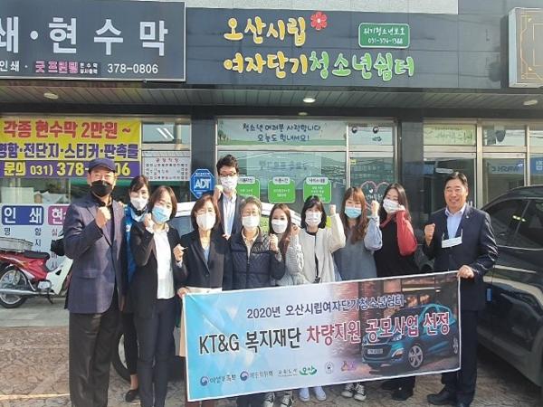 오산시는 지난 26일 오산시립여자단기청소년쉼터가 KT&G 복지재단에서 실시한 ‘2020년 사회복지기관 차량 공모사업’에 선정되어 경승용차를 지원받게 됐다고 밝혔다.
