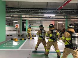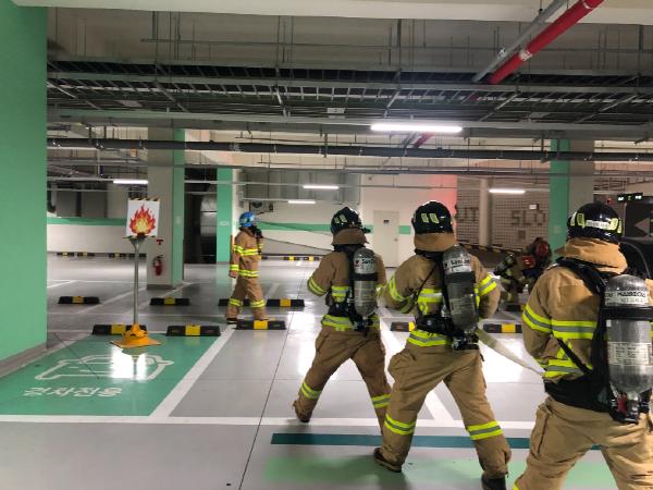 김천소방서(서장 박경욱)는 지난 22일 한국전력기술 지하주차장 지하층 내 화재 대비 소방훈련에 이어 금일 김천혁신도시에 위치한 한신휴시티 지하주차장에서 지하층 내 화재 발생 시 신속·정확한 현장 소방 활동 전개로 인명 및 재산피해 최소화를 위한 현장적응훈련을 실시했다고 밝혔다.