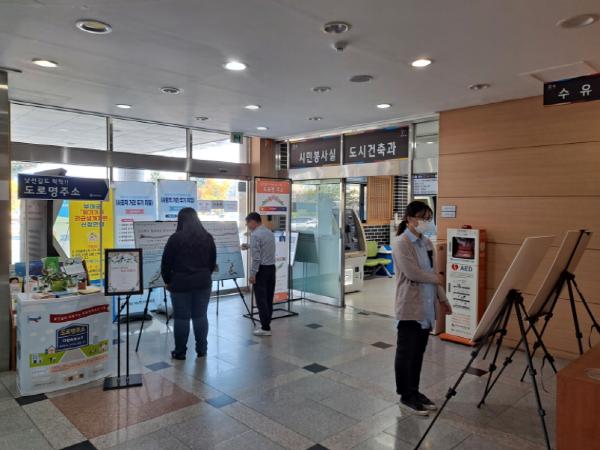부여군이 부여군청 신관 로비에서 도로명 유래 사진전을 개최하고 있다.