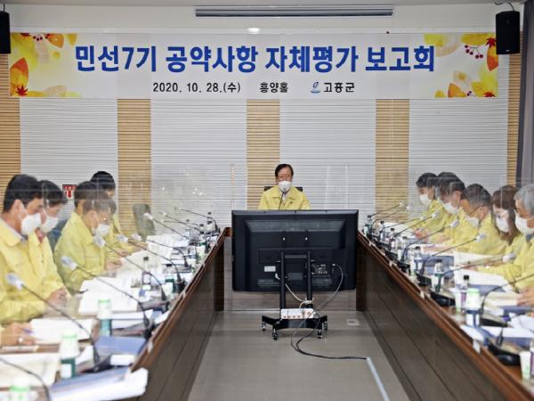 고흥군(군수 송귀근)은 지난 28일 군청 흥양홀에서 송 군수, 실과단소장 등 30여명이 참석한 가운데 ‘민선 7기 공약사항 자체평가 보고회’를 가졌다.