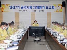 이날 공약사항 자체평가 보고회는 군정평가위원들의 공약사항 평가에 앞서 전반적인 공약사업 추진상황을 짚어보고 그간의 추진실적을 점검해 공약사업 추진율 제고를 위한 대응방안을 마련하기 위해 진행됐다.