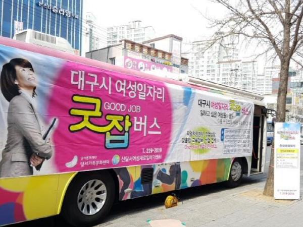 달서구 신달서여성새로일하기센터가 진행하는 찾아가는 취업상담 「굿잡(good job)버스」가 코로나19 장기화로 구직활동에 어려움을 겪는 지역 여성들을 응원하고자 오는 11월 2일 오전 11시부터 오후 5시까지 이마트 월배점에 정차한다.