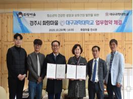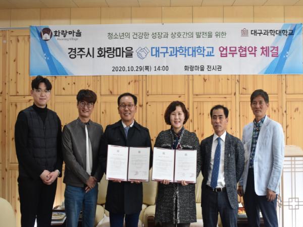청소년수련시설인 경주시 화랑마을(촌장 최영미)은 29일 화랑마을 전시관에서 대구과학대학교와 교육 및 청소년 분야의 관학 교류 협력 체제 조성으로 청소년 분야의 발전을 위한 업무협약을 체결했다.