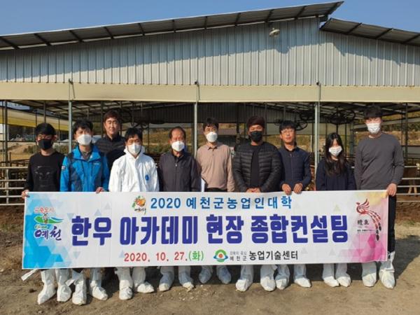 농촌진흥청 국립축산과학원과 예천군농업기술센터(소장 최효열)는 27일 예천군 청년한우농가(3농가)를 대상으로 가축번식, 사양관리, 질병관리 분야에 대하여 전문가 현장 종합컨설팅을 실시했다.