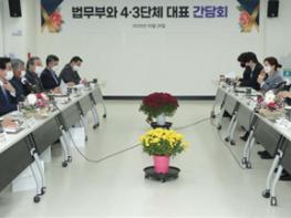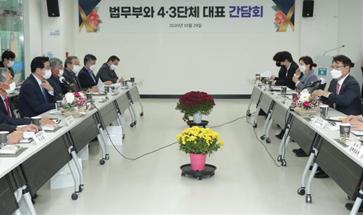 법무부는10. 29일 제주4·3트라우마센터에서 제주4·3사건 단체들과 함께 제주4·3사건의 피해 회복을 위한 현장 간담회를 개최하였다고 밝혔다.