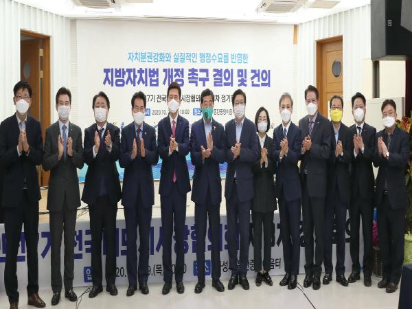 또한 서 시장은 이날 회의에 참석한 안산, 수원, 성남, 용인, 부천, 남양주, 안양, 청주, 천안, 전주, 포항, 김해 등 전국 13개 지자체 단체장들과 결의문을 통해 지방자치법의 조속한 개정도 요구했다.