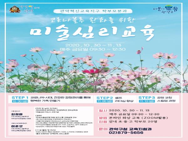 관악구가 관내 초중고 학부모를 대상으로 코로나블루 완화를 위한 온라인 미술심리교육 특강을 진행한다고 밝혔다.