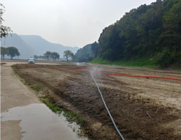 센터는 최근 45일간 강우량이 16.5mm로 전년 동일기간 218.5mm에 비해 비가 적게 내려 발아가 늦어지고 있어, 초겨울 한파 피해가 예상되어 사전에 예방하고자 물주기 작업을 실시했다.
