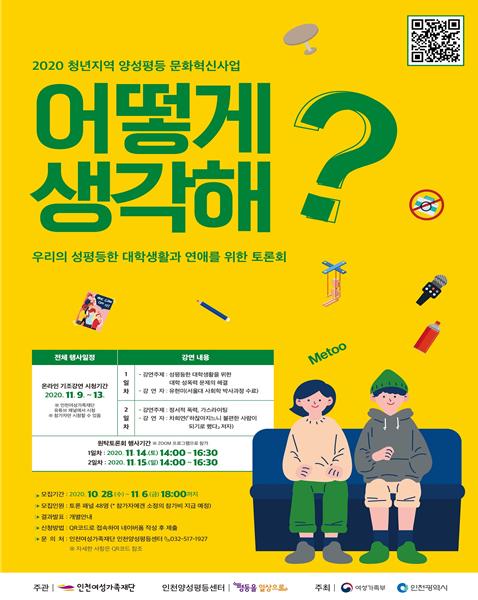 여성가족부와 인천광역시가 주최하고 인천여성가족재단 인천양성평등센터가 주관하는 온라인 원탁토론회가 11월 14일과 15일에 개최된다.