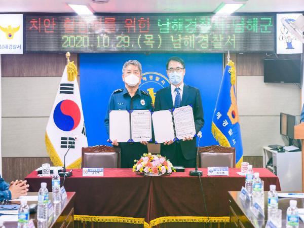 남해군과 남해경찰서는 여성·어린이 등 치안 약자 보호와 범죄 발생 우려 지역에 대한 안전 확보는 물론 코로나 19 관련 협력체계 역시 구축해 나가기로 했다.