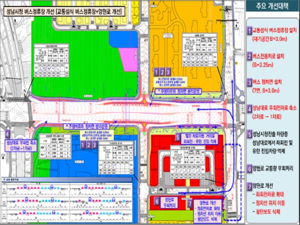 교통섬 형태 버스정류장이 완공되면 시청 진·출입로에서 성남대로로 진입해 좌회전하거나 유턴할 수 없게 된다. 우회도로인 양현로 405번길을 이용해야 한다.