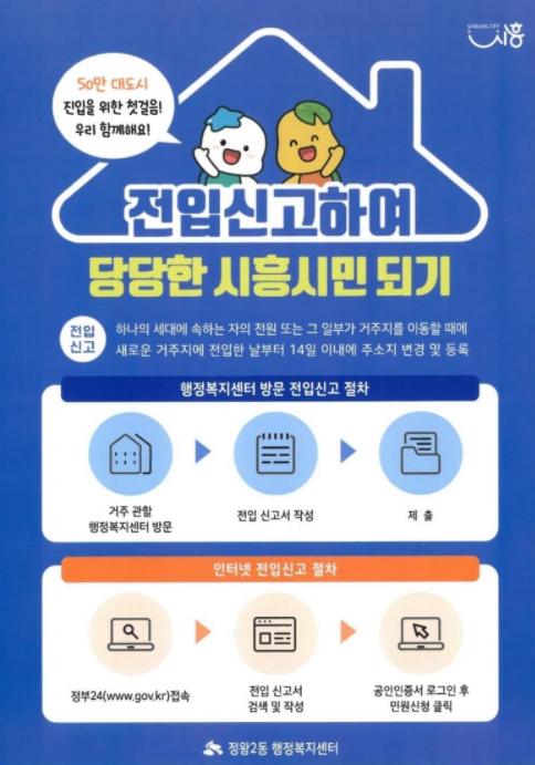 전입신고는 새로운 거주지에 전입한 날부터 14일 이내에 주소지를 변경 및 등록하는 것으로, 거주 관할 행정복지센터를 방문하거나 정부24(www.go.kr)로 온라인 신청하는 방법이 있다.