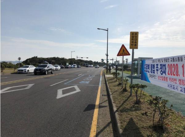 이에 따라, 세계유산본부에서는 성산읍 고성리 263번지 등 광치기 해변 인근에 78면과 223면의 공영주차장을 조성하여 이번달 24일부터 개방하고 있으며, 서귀포시에서는 사업비 25백만을 투입하여 불법주정차 단속카메라를 설치하여 다음달 2일부터 불법주정차 단속을 실시할 예정이다.