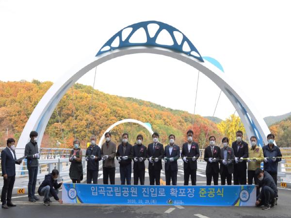 함안군은 지난 29일 오후3시 입곡군립공원 주차장에서 공원 진입로 확포장공사 준공식을 가졌다.