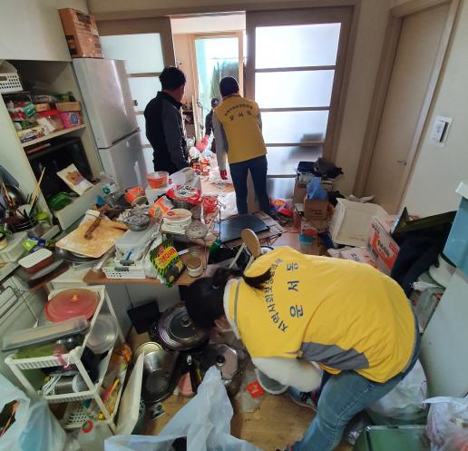 대상자는 몸이 불편한 홀로 사는 중장년 남성으로 집안 내부에 각종 생활 폐기물, 오래된 가전제품 등이 가득하고 신발을 신고 생활하는 비위생적인 주거환경에서 지내고 있었다.